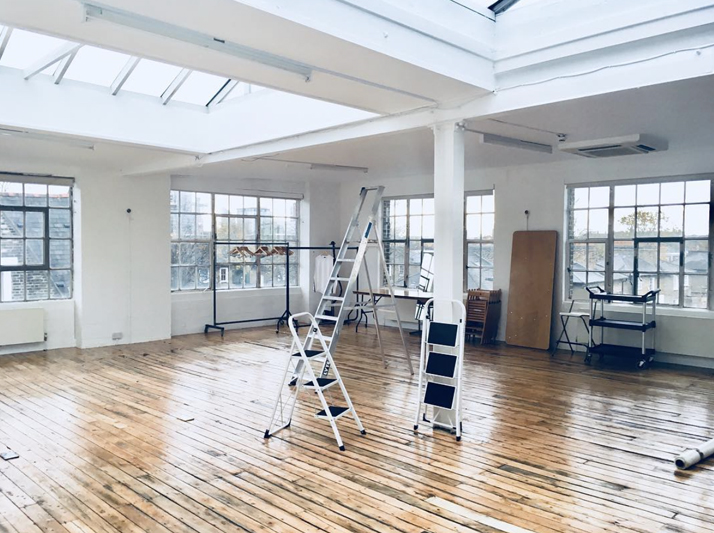 The warehouse space is located on the top floor with ample amount of daylight coming from large windows and two large ceiling skylights. There is also an option of having the studio blacked out if required.