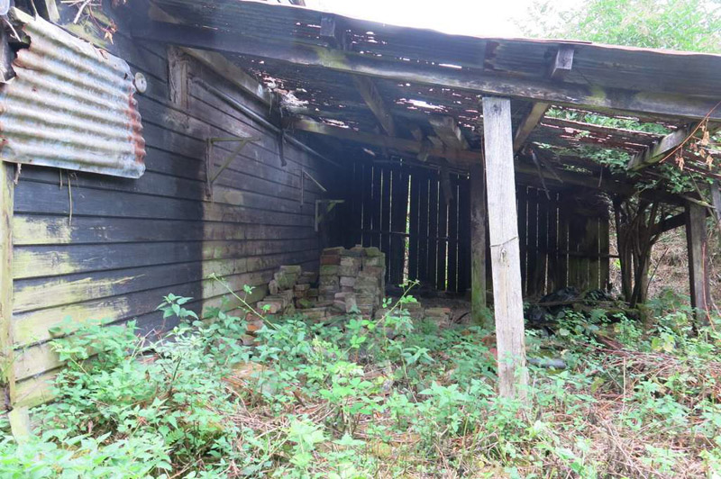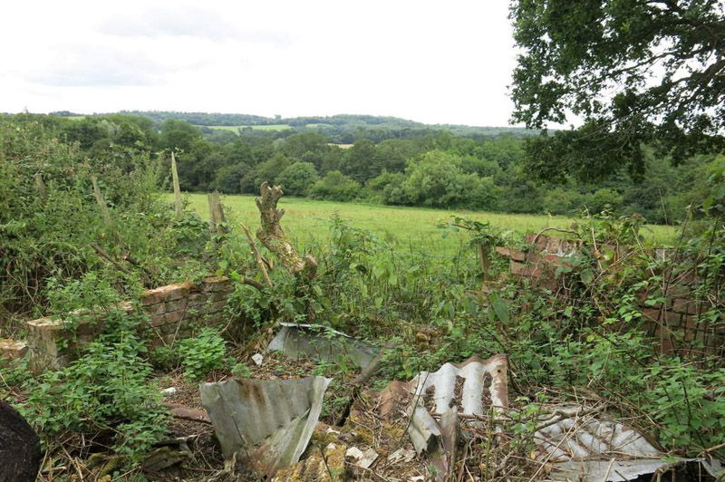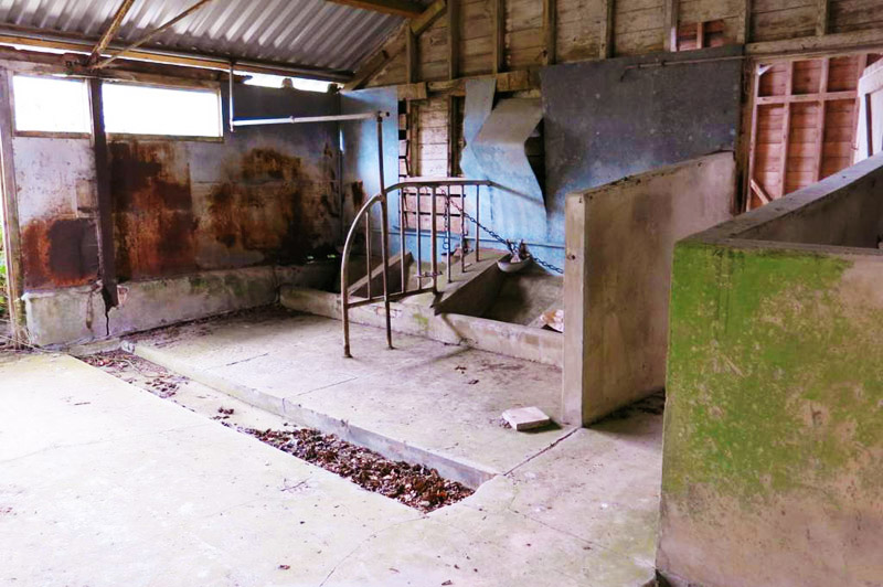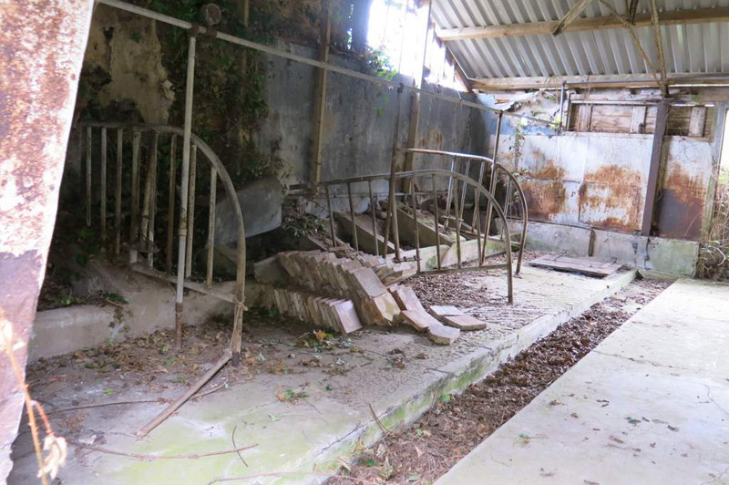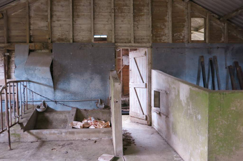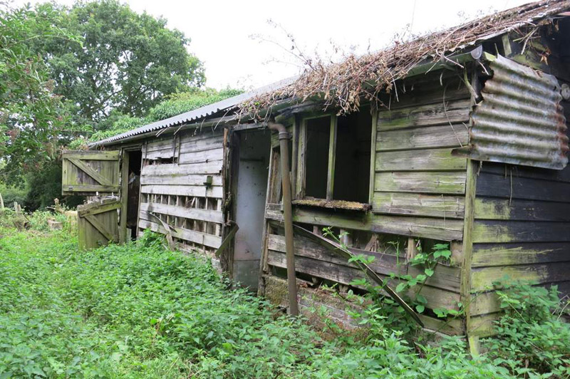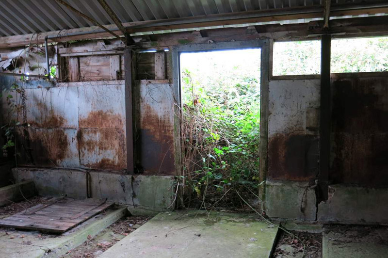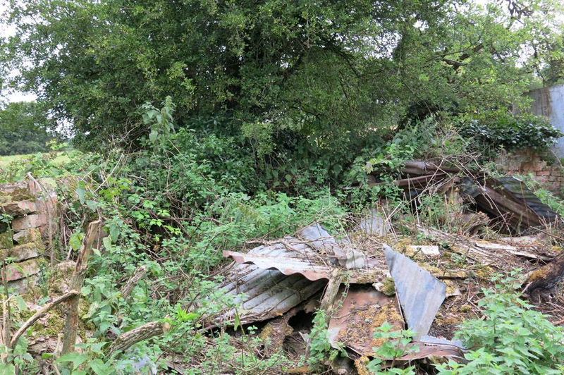 This derelict location , is a redundant farm building part collapsed with metal sheeted roof.