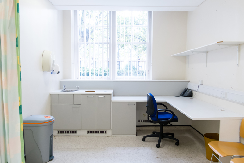 Four of the consulting rooms, office and waiting area have large south-facing windows providing exceptional daylight.