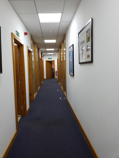 About 20 rooms including offices, boardrooms, kitchens, waiting rooms, storage rooms. 2 floors of a building and additional underground parking. Parking also available on ground level.