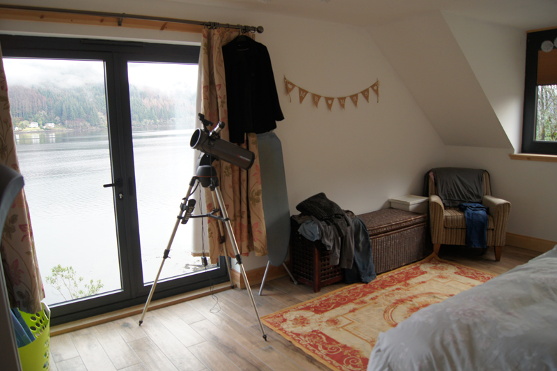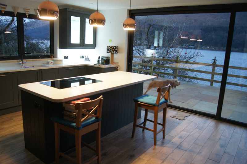 Kitchen/Diner with Loch views, patio area and private shingle shoreline, boatyard with boats and jetty access to water.
