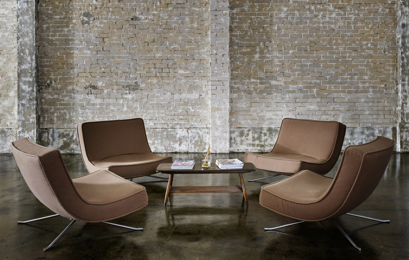 The exposed brick walls on one side of the space and the concrete pillars add character.