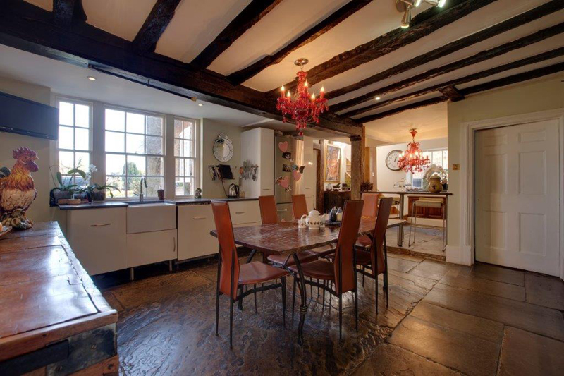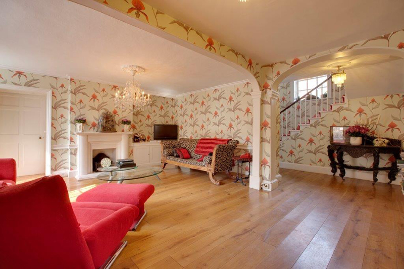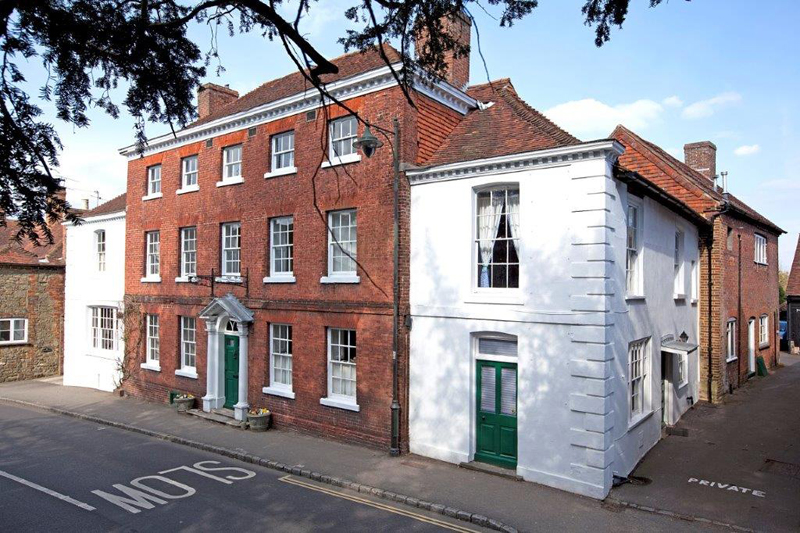 This 18th century Listed Grade II*house displays an impressive red brick façade to the street with attractive modillion eaves, twelve paned Georgian sash windows and elegant pillared portico.