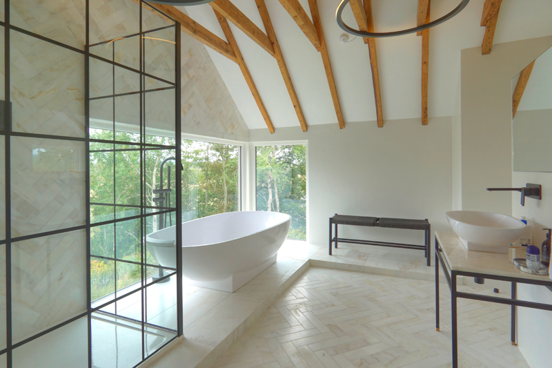 The two floors are strikingly contemporary, with no end of sleek surfaces, chic furnishings and eye-catching lighting, that being said, it’s still reassuringly easy to get toasty and warm with 6 wood burning fireplaces.