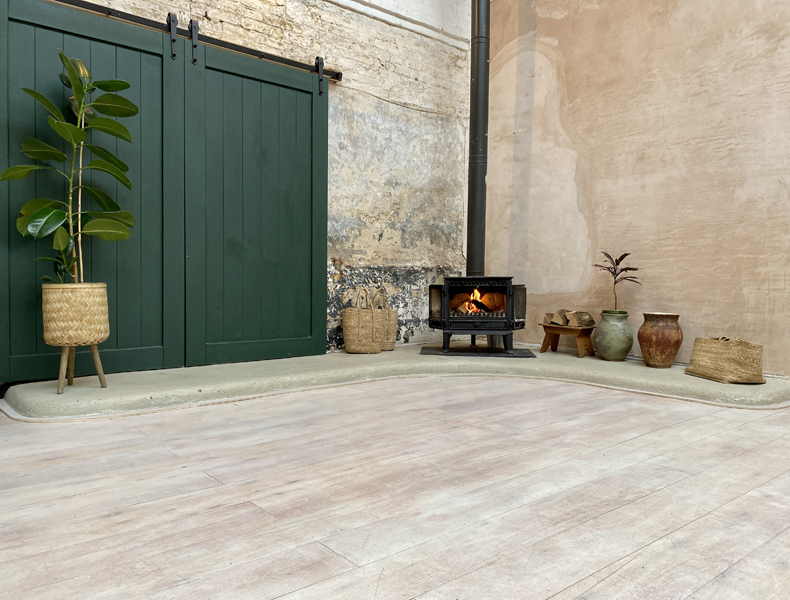 Wide-plank wooden floors. Beautiful space, ready to dress as you desired, or enhance the various eclectic props.