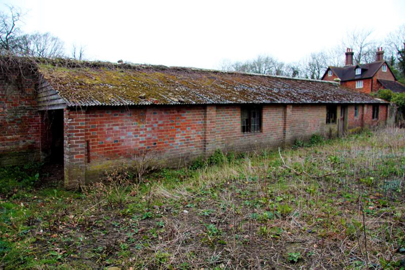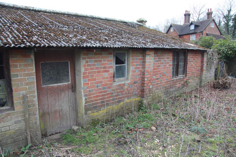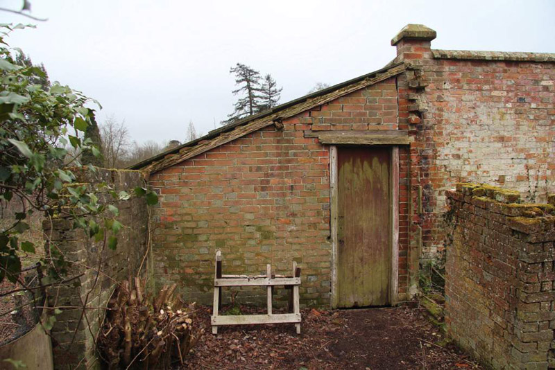 This beautiful potting shed sits alongside one of the walls of the walled garden of the main house. Built with visible brick walls with asbestos roof, there is also a small fireplace by the entrance