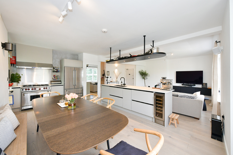 8 seater dining table in the centre of the kitchen area (what one would call a chef’s table)