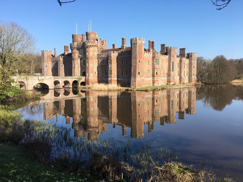 Designed with red brick, the castle also has a garden with beautiful features including, stunning English yew hedges, croquet lawns, a rose garden and a long border of Indian bean trees. Beyond this is a gorgeous five acre wildflower meadow, a folly with a walled garden and a sprawling ancient woodland.